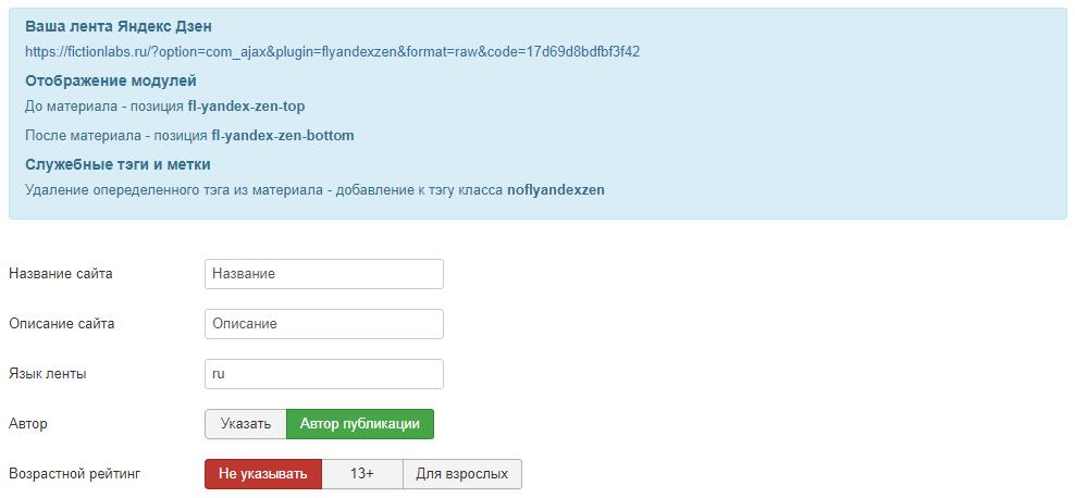 FL Yandex Zen - плагин RSS ленты Яндекс Дзен для Joomla
